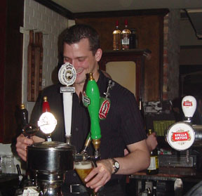 Stella Artois sign outside.
